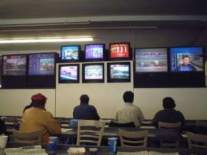 | 今日は新聞の「Selection」(新聞の予想家の予想のまとめ欄)を参考に買う。そうすると、かためだったり中穴くらいだったりするも、ガルフストリームパークが結構当たる。なんだ!これ見て買ってればよかったんじゃんか・・・と今ごろ反省。 でも同じように買ってもフェアグラウンドの方はなかなか当たらない。誰も印をつけない馬が結構来て、軸は来てもハズレというのが続いてきました。 昼を過ぎるとサンタアニタパーク競馬場とゴールデンゲートフィールズ競馬場も始まり、いよいよ4競馬場同時開催が! 基本的に目の前に馬が走っていないので、ほとんどラスベガス状態。 |