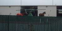 いよいよこの出張の最終日、最後は馬は走っていませんでしたが、ベイメドウズ競馬場に行きました。 馬場の内側と脇が厩舎になっているようで、馬が運動などしていました。 |