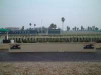 | いつもより早く11時頃に到着。駐車場に車を止めてスタンドへ。 入場料が3ドル。なんかちょっと高いような気もしましたが入りました。しばらくするとクラブハウスというところも開いて、みんなそちらの方に行くので私も行ってみると、入場がまた3ドル。まあ払って入る。 確かにすいてていすもたくさんあっていいが、グランドスタンドでもいすは結構置いてあるので、何がよくて皆クラブハウスに入るのか少々疑問。 |