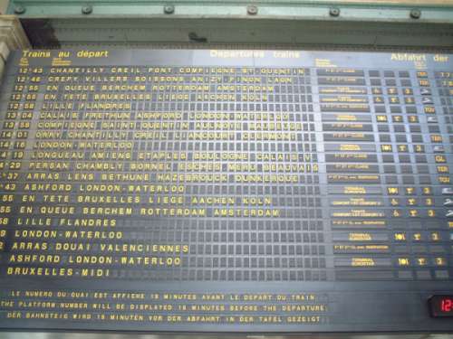 | シャンティー競馬場は電車で行きました。パリの北駅(Gare du Nord)から方向的には北へ行ったところにあります。(北駅はパリの中心にあります。地下鉄のマップなどをご参照ください) 北駅はロンドンへのユーロスターや各方面へのTGVなども出発する大きな駅です。 |