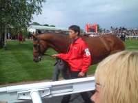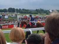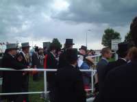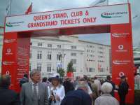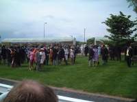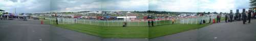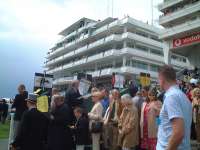 そして翌日。今日は出張の最終日、昨日に続きエプソムダウンズ競馬場に行きました。今日はダービーです。 今日はEpsom Downs駅から行くことにしました。ロンドン・ビクトリア駅から1時間弱でEpsom Downs駅につきます。駅から競馬場までは住宅街やゴルフ場の中を通ってたっぷり15分くらいかかりました。思ったより結構遠い感じでした。 今日はいつもより早く行ったのですが(競馬場に1時前に着きました)が、昨日のオークスとはだいぶ違い、ものすごく人が多い感じでした。グランドスタンドの入場門は手荷物検査をしている関係でめちゃめちゃ長い列が出来てました。係の人に聞いたらクラブハウスへの入り口はクイーンズスタンドと同じところから入れると言うのでそちらに回り早く入ることが出来ました。手荷物検査では「携帯電話を持ってるか?」と聞かれました。携帯電話はダメなんでしょうかね?Vodafone提供のダービーなのに・・・。 |