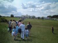 | 帰りはEpsom駅とは別ルートのEpsom Downs駅から列車にのろうと思い、バスには乗らず人の流れについて歩いていきました。10分ほど歩いたところでどうも見覚えがある道が・・・そうです、この人たちはバスで10分のEpsom駅に歩いていたんです。バスで10分と言うことは・・・帰りは30分以上歩くはめになってしまいました。まあ今日は勝ってて気分もいいし良しとしましょう(でも歩き疲れた・・・)。明日は違うルートで来る予定です。 |