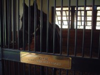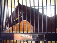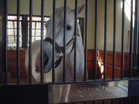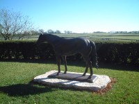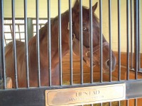 | さすがにとても有名な牧場だけあって、事務所棟も受付も、種牡馬のいる棟(写真左上)も大変きれいで立派なものでした。 これだけの種牡馬がいれば確かにこのくらいの建物は建つなぁ・・・と感心してしまいました。右上の銅像はエーピーインディーだそうです。エーピーインディーが建ててくれたと言っても過言ではないのかもしれません。 ジルさんに「ブリーダー(馬産家)なのですか?」と聞かれたので「タダの競馬ファンです」と説明し、案内をしてもらいました。レーンズエンドの種牡馬カタログをくれたのでそれを見ながら馬たちを見ていきました。 建物に入ってまず最初にいたのがあのエーピーインディーでした。大変人なつっこくて、柵の方に寄ってきてくれました。でもあとで分かったのですが、人なつっこいというよりもジルさんが案内に来るとキャンディーをくれるのをみんな知っていて、行く先々で馬たちは大歓迎(というかキャンディーが欲しい)でした。(イースタンエコー・Eastern Echoという馬だけがキャンディーを好きではないらしく寄ってきてくれませんでした(笑)。) 馬たちの写真や血統、種付け料などは下に掲載しますのでどうぞご覧下さい。 案内をしてくれたジルさんはとってもやさしい人で、いい写真が取れるように馬を呼んでくれたり、「昨日のBCジュベナイルに出てたケイムホーム・Came Homeはうちの牧場にいたのよ!」とか教えてくれたりしました。馬に触ってもOKだそうで、写真をとってももちろん良くて、なんだか10年以上前に北海道の牧場に行ったときのことを思い出してしまいました。 ここレーンズエンドファームには日本からも馬を見る人が来るそうで、特にケンタッキーダービー前後には日本に限らず見学者が多数来場するそうです。 約1時間ほどで1周して見学は終了となりました。基本的にずっと案内をしてくださってました。総評としては大変満足な見学が出来ました。日本からお礼用に買っていったお土産をジルさんにお渡しして、丁重にお礼を言ってから牧場を後にしました。店長は今回はじめてアメリカの牧場を見せていただいたのですが、本当におすすめです(他の牧場がこんなに親切か分かりませんが・・・)。車で行かないといけないのと、英語がちょっとは分からないとアポイントが取れないなどの問題があるかもしれませんが、条件を満たせれば是非おすすめです。 |