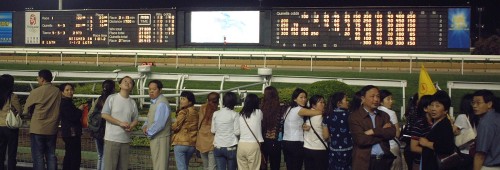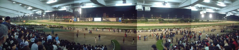 | スタンドに入ってみるとちょうど第1レース発走(最近1レースに遅刻気味・・・)。直線になったら驚いたことに日本の競馬も顔負けなくらいの大声援。今まで見た世界各地の競馬の中でもトップクラスの盛り上がりでした。馬の位置取りがビジョンにアップになるだけでどよめいてました。まあ、結果的に単勝12.2倍、連勝22.1倍、三連単は297.3倍とそこそこついたので特に盛り上がったのかもしれません。 お客さんもスタンドいっぱいくらいいて、旗を持った案内人がいるところを見るとどうやらオプショナルツアーみたいなので来ている観光客風の人が多い感じ。日本のゴールデンウィークはちょうど中国本土も連休らしく、中国本土からの観光客かもしれません(マカオも中国ですが)。 他にもおばさんの集団が「あら、あなた買ってたの〜」みたいな会話をしていたり(たぶん(笑))、ファミリーそろって競馬を楽しんでいたり、全体的にはなにやらアジアの熱気を感じてなかなかいい雰囲気。ナイター照明で照らされた競馬場もきれいでした。ただ、1レースからこんなに盛り上がって最後までもつのかなぁ?とちょっと心配に。 |